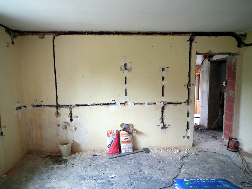 Provádím kompletní elektroinstalační práce v nových objektech i rekonstrukce původních již nevyhovujících el. rozvodů a to včetně vysekání kabelových tras. Součástí je i kompletace a zapojení silového rozvaděče. Nedílnou součástí provedené elektroinstalace je i předání projektové dokumentace. Mohu zajistit i revizi realizované instalace. |